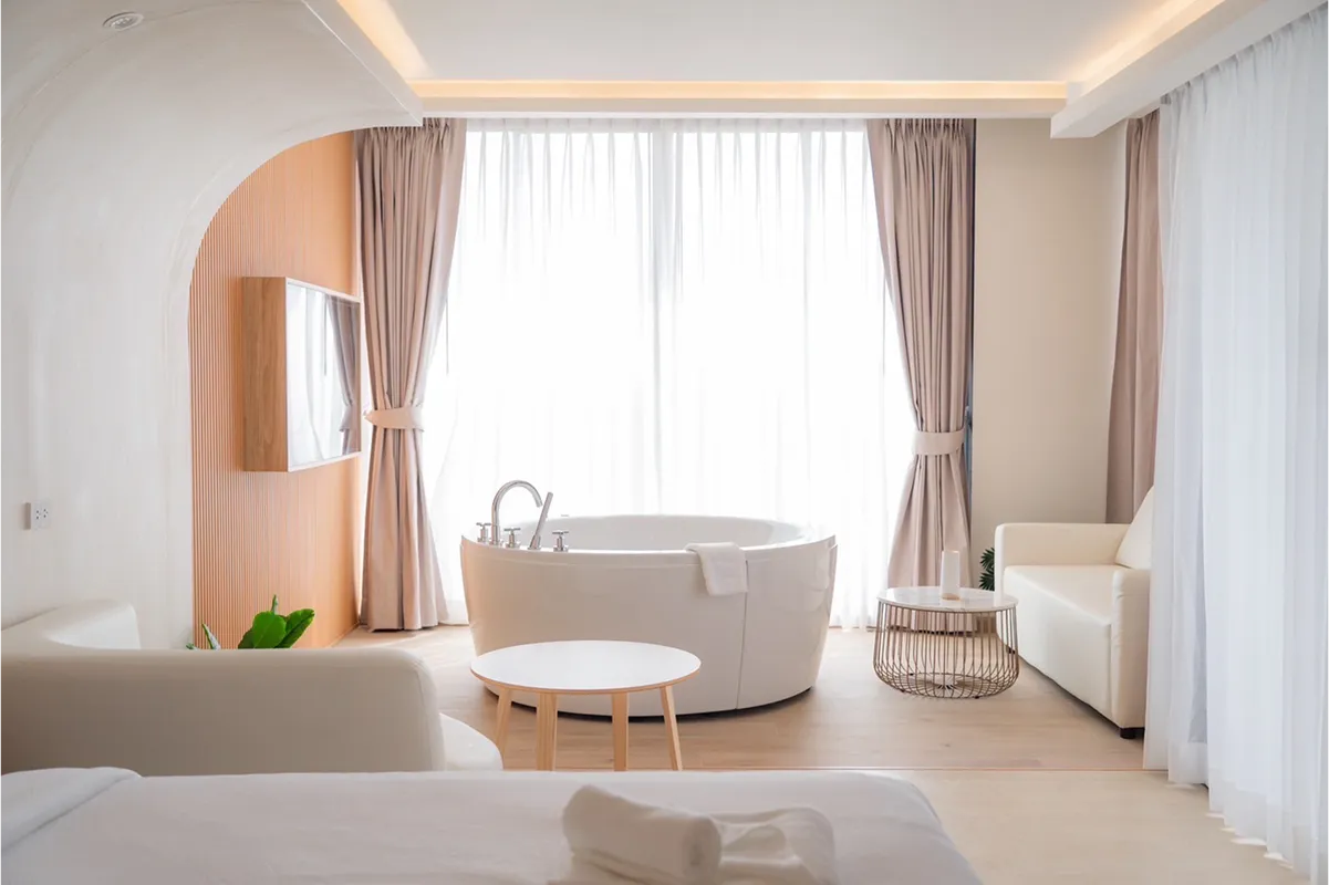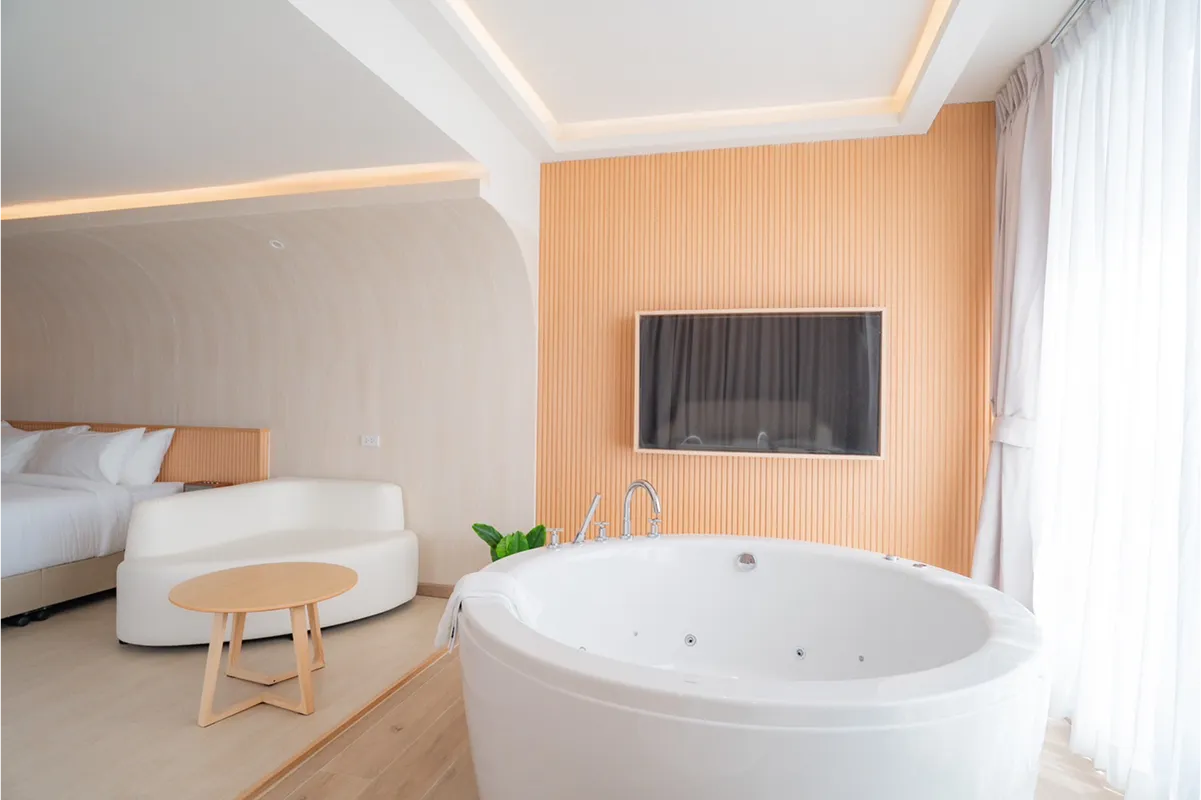 สัมผัสประสบการณ์การพักผ่อนเหนือระดับที่มาพร้อมอ่างจากุซซี่ส่วนตัวและวิวเมืองที่สวยงามที่สุด